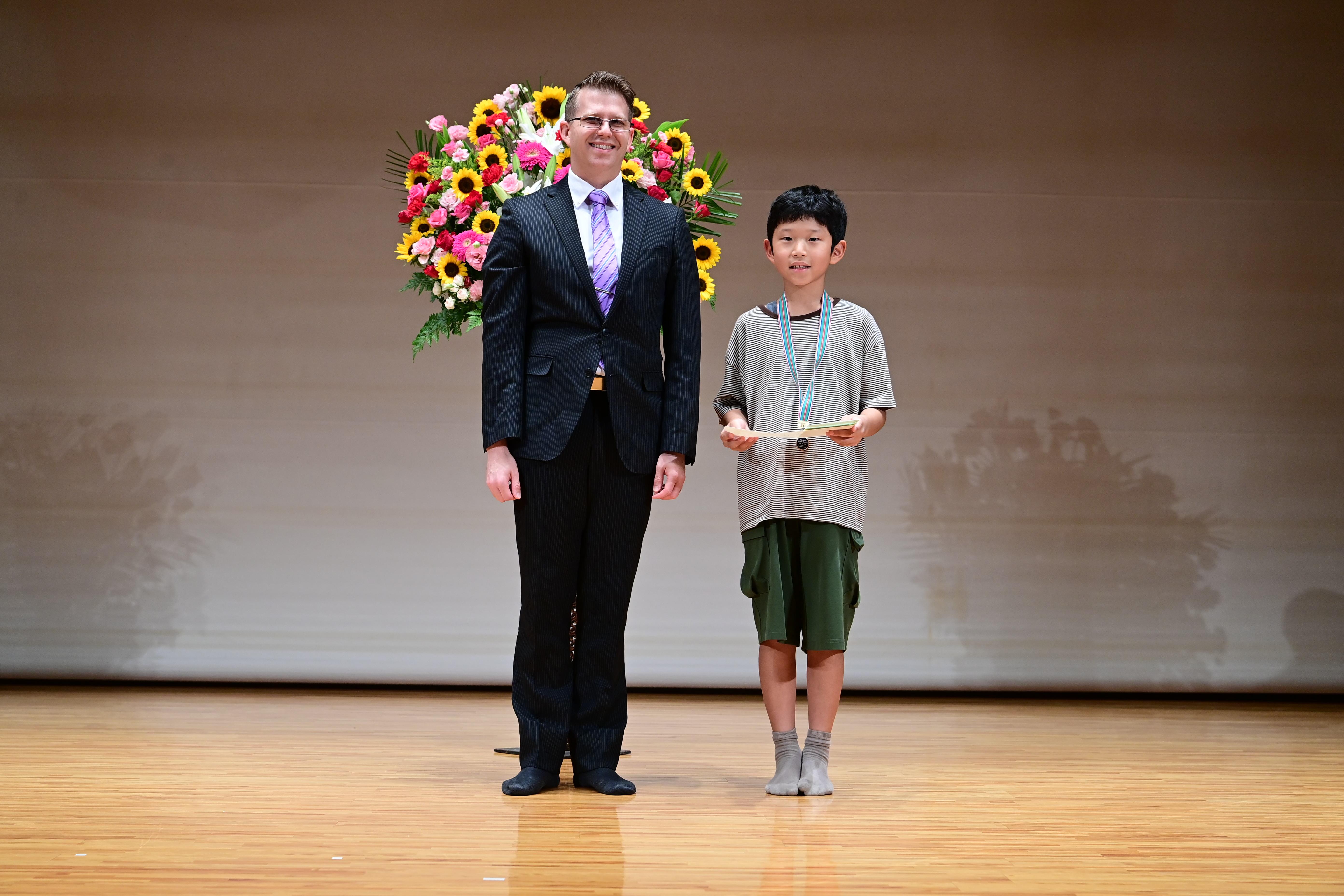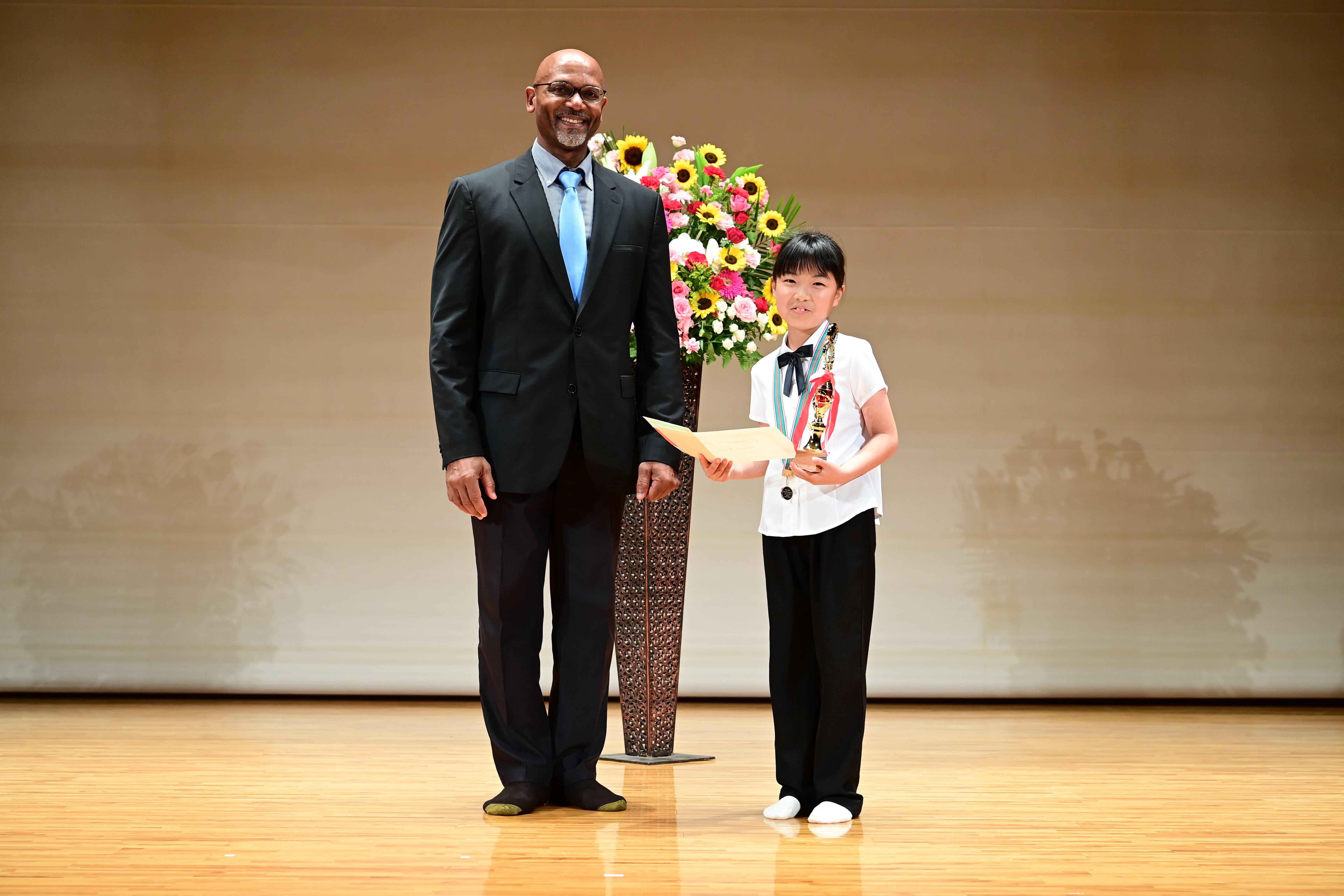 今回、年長の時と2度目の審査員賞を頂きました。3年前と同じ審査員の方から賞状を頂き当時の喜びを思い出しました。今年は息子も出場意欲も強く、練習にも力が入っていました。3年生になりレッスンは一人になりましたが、先生方の温かいご指導と息子の日々の努力が結果となったと思います。また次の目標を見つけた様で、更に向上心を高められました。このような機会を頂けた事に感謝致します。ありがとうございました。